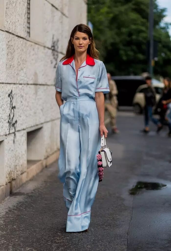 选择阔腿裤套装或上下同款同色也是一种更简约的高级,同时还能让气场全开~