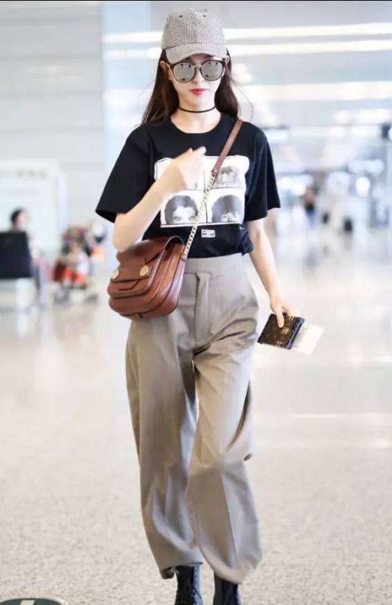 像唐嫣和宋茜都是用T恤搭配高腰款式阔腿裤,更显腿长,气场立马就出来了。