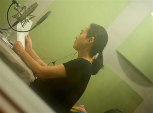 怀孕期间她心情是不好的,但是还是要坚持的工作,因为自己的新片,自己不得不去化妆配音。