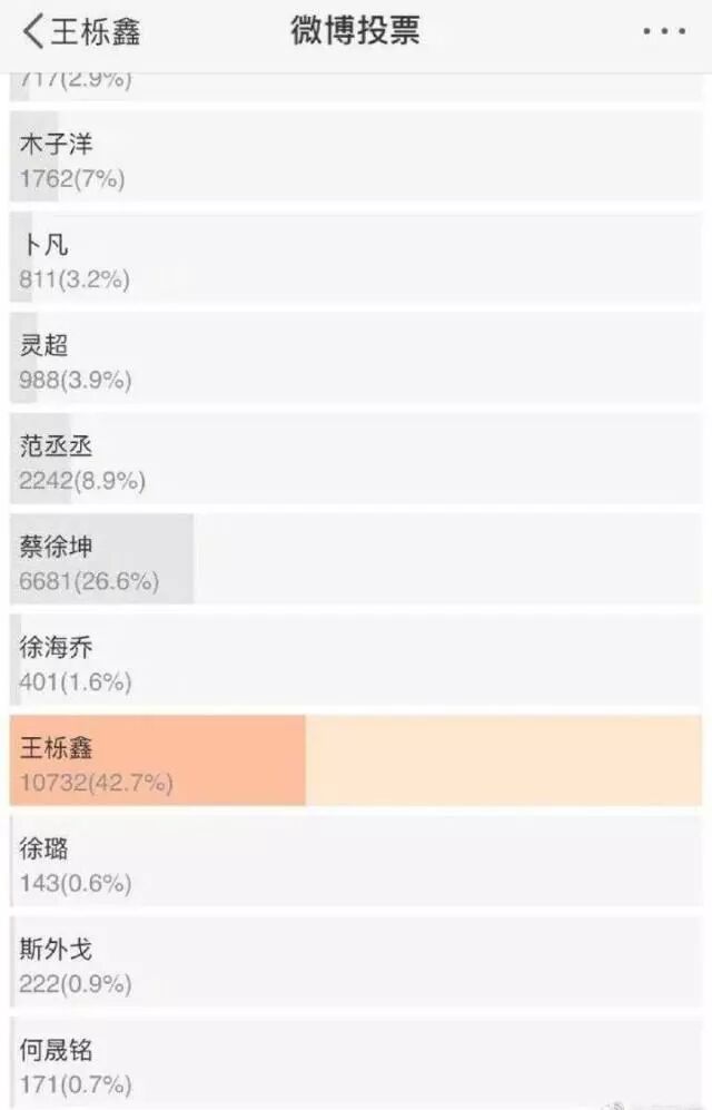 粉丝们看到王栎鑫这么可怜就成功帮他反超了蔡徐坤,看来出道这么多年的群众基础还是很强大的。