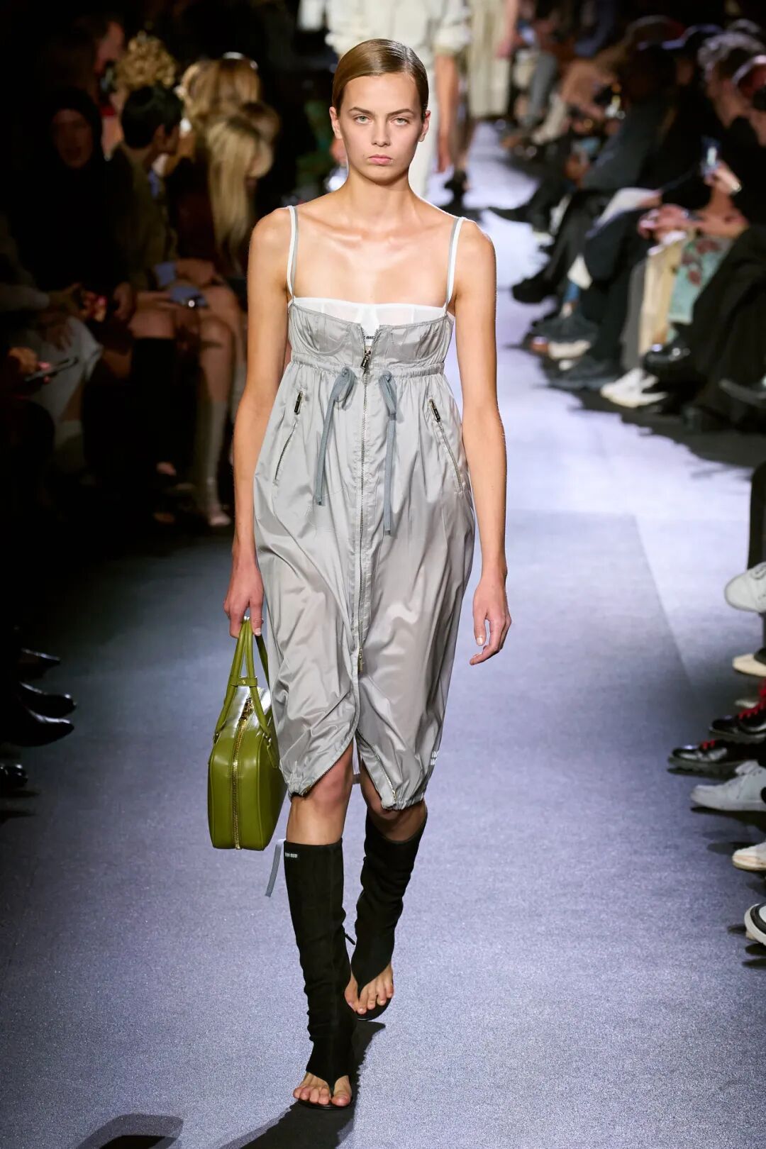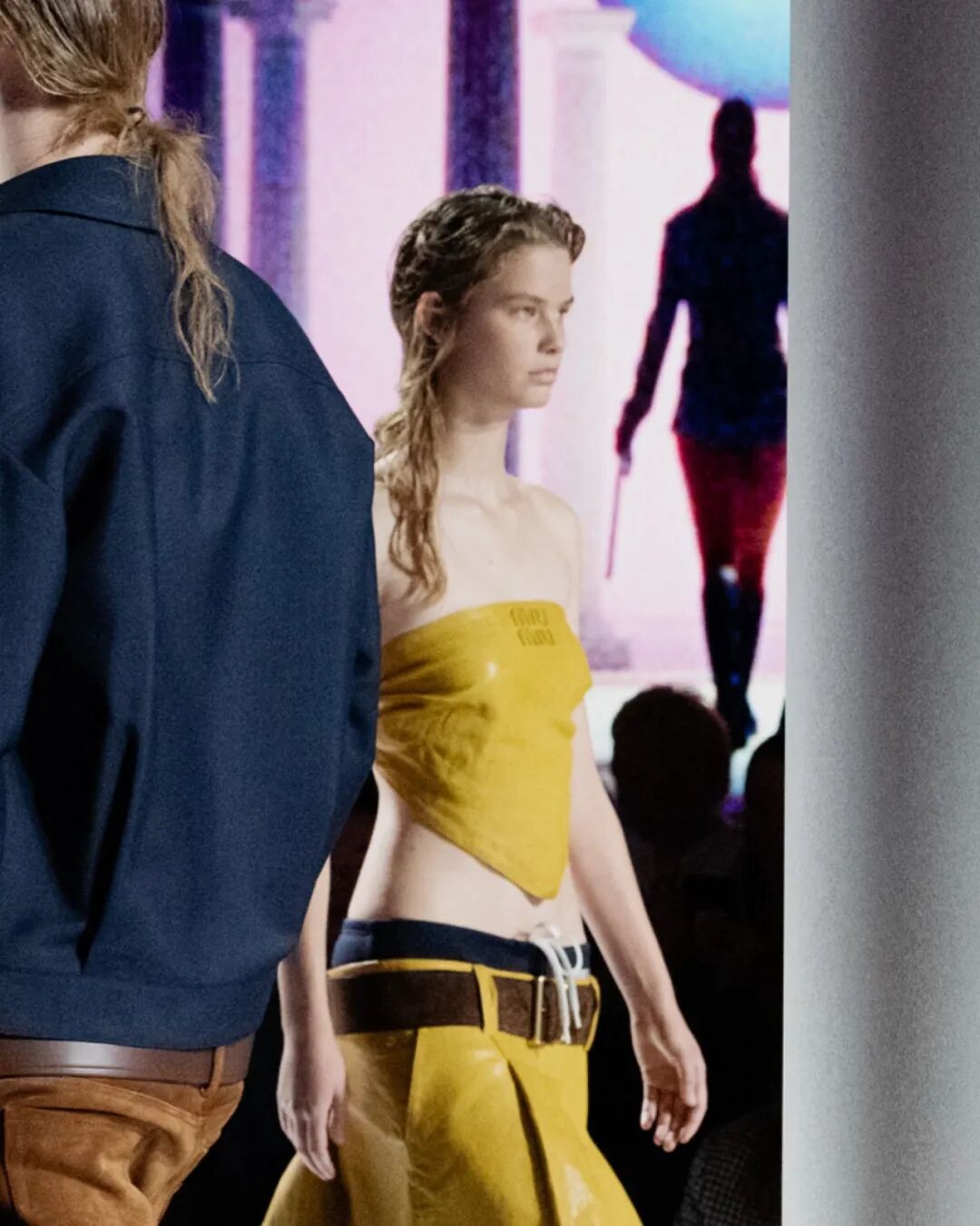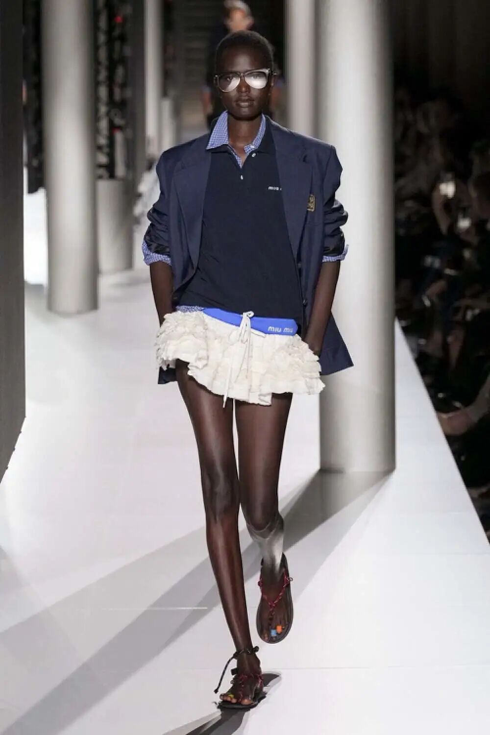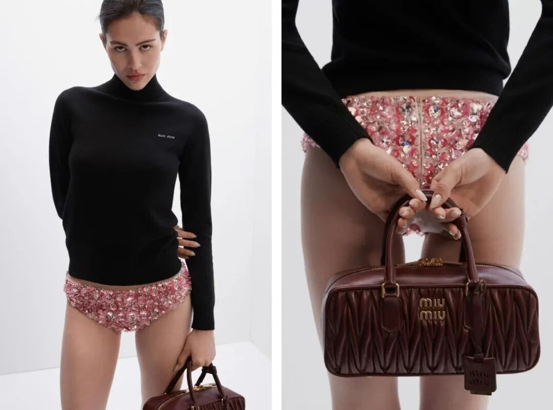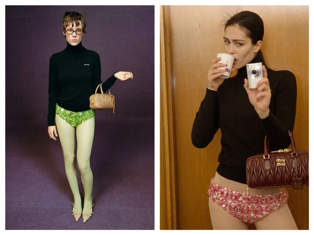 赵今麦正式回应4万块的钻石短裤事件 宇博gogoboi 内地女星 2023-11-15 22:31:08 184 创作不易,用心坚持,欢迎请BaGua喝几杯爱心咖啡!打赏并支持本文 打赏并删除本文 穿4万多的钻石短裤是一种什么样的体验?前两天,赵今麦妹妹就因为穿了这条天价苦茶子拍杂志而空降热搜,评论区底下的网友们都吵成一团了,比《奇葩说》都热闹。有的人觉得麦麦这个造型很先锋、很大胆。搞时尚么,本来不就得穿点出奇制胜的?你看人超模雎晓雯和肯豆,不都这么穿吗?但也有人觉得内衣外穿太Over了,镶了钻的苦茶子还是苦茶子。(真的不觉着硌得慌吗?)刚好,我最近在活动现场碰到了赵今麦本人,趁机问了一下当事人,她是咋想的? 当天她的装扮也挺特别的,看似规规矩矩的条纹Polo衫上却带了一圈轻盈浪漫的羽毛。复古的波浪长卷发和那一抹Bling Bling蓝色眼影,整个人俏皮中还带点小性感。 而且当天她妈妈也在,宇博亲眼认证,大眼睛真的是遗传,两个人就是一个复制黏贴的效果。 我问她当初拍摄广告的时候会很抗拒吗?她回答的确要克服一下,虽然造型很突破,但在那种专业的工作氛围下,其实没感觉不自在。 对于网友的讨论,她的回答也很得体:确实,每个人都有自己的看法,她也会听取大家的意见。我当天还看到了很多其他的明星。 刘柏辛和以往舞台上拽得二五八万的Rapper形象不同,这次换上西裤Polo衫,戴上窄窄的书呆子黑框眼镜,斯斯文文,跟班导主任似的。还有SEVENTEEN的文俊辉,舞台上是荷尔蒙炸裂的狂野猎豹,当天走起了清爽松弛的度假风。 我还和他聊了聊近期的新动向,他的Solo新歌,和一些富有且大方的梗……懂的都懂(采访视频发了,可以在视频号上看哦~当然我自己穿得也不差,黑框真是男人最好的医美,这一身直接梦回18岁有没有?这两年,我看着Miu Miu越来越火。Lyst每年都会出一个热门品牌排行榜,去年Miu Miu就靠着49%的搜索量增长获得了“年度时尚品牌”称号。今年Prada集团公布的上半年财报里,Miu Miu的二季度营收增长达到了57.3%,在不景气的今天,这可是个让品牌们都眼红的战绩。 Credit:Ava Darvish穿Miu Miu的明星就更加数不胜数了。之前我们就写过,Miu Miu那套露胃装让全世界的大明星们撞衫撞成连环车祸。 而且Miu Miu明明没有男装线,却还是有不少男明星成了Miu粉。王一博、于适、屈楚萧这些以啥张力著称的男明星,都穿过Miu Miu的衣服。 Fendi创意总监Kim Jones更是氪金脑残粉,坊间传闻,他把Miu Miu家2022秋冬一整个系列都买了。(他老穿Miu Miu谢幕,不知道东家LVMH对此作何感想?) 有意思的是,随着Miu Miu越来越火,我发现小红书上对Miu Miu的迷思也越来越多,最常见的一个问题就是:-gogoboi-Miu Miu 到底是什么档次?它是Prada的副牌吗? 先说结论:漏,Miu Miu不是Prada的副牌。如今的它是一个可以独领风骚,甚至和Prada分庭抗礼的品牌。定价和Prada差不多,风头也毫不逊色。 1993年,Miuccia Prada女士创立了这个以她的小名命名的品牌。如果说Prada是Miuccia继承来的家业,多少有些要顾及的历史传承,那Miu Miu就完全是她的自留地。她把所有在Prada没办法实现的念头,都留给了Miu Miu。 Miu Miu 1996春夏系列就开始内裤外穿了而且从2006秋冬这一季开始,她就把Miu Miu的秀搬到了巴黎时装周,故意和Prada的秀区隔开来,为的就是能让大家不再把Miu Miu看成一个副牌。 今年“三十而立”的Miu Miu,也已经建立起了一套和Prada不同的审美趣味,也就是大家常说的“Miu味儿”。Miuccia Prada女士自己是这样形容Miu Miu的风格的:“Miu Miu比Prada更关乎时尚,它更关乎氛围,更性感。它是轻盈而自由的,丝毫不严肃。年龄根本不重要,重要的是精神。” 是不是感觉很厉害,但又有点抽象?今天我就把这种抽象的Miu味儿拆解成了四个维度,让大家明白Miu Miu的造型到底妙在哪里。这四个维度里,只要做到2点,就能沾些Miu味儿;做到3点,就是标准的Miu Miu女孩;做到4点,下一季就可以直接给Miu Miu拍大片了。(我说的不算……)-gogoboi- ① 性感 没错,就像Miuccia本人说的那样,Miu Miu是一个性感的品牌。这一点,可能会有很多人不认同。因为说起性感,我们想到的是Tom Ford时期的Gucci,或是强调曲线的Mugler,冶艳、魅惑,充满吸引力。但这些形容和Miu Miu好像有点八竿子打不着。 Miu Miu的性感是完全跳脱出经典的性感定义的。Miu Miu的系列里,有很多露肤度很高的设计,但却是用一种反传统的方式呈现的。比如我们开头说的那条4万块的天价苦茶子就是一个Miu式性感的经典案例。它把视觉重心完全地放到了腿上,照理说是很性感的。但是“镶钻内裤”这种介于内衣与外衣之间的“尴尬”单品,又让人的心思刚要荡漾就收回来了。关注点不在腿上,而转移到了“内裤外穿”这件事本身的戏剧性上。 Miu Miu的衣服里,也很少见到要把女性身体掐成一只红酒杯的沙漏设计。相比强调腰线,Miuccia更喜欢强调胯线。 无论是低腰的设计,还是抢眼的腰包,都是为了强调胯骨。这种做法仍然可以强调女性身体的流畅线条,但却比沙漏设计要年轻、天真许多。 Miu Miu家那些惊世骇俗的露胃装,之所以露出这么一大截肌肤却没有半点讨好感,就是这个道理。试想一下,如果上衣加长一些,裙子加高一些,强调腰最细的部分,那不就成了普通的BM风了吗? -gogoboi- ②朴素要理解Miuccia Prada的设计,先要理解她的人:她可是政治学博士出身,还是意大利party员…… 这也就是为什么,无论是在Prada还是在Miu Miu
