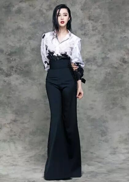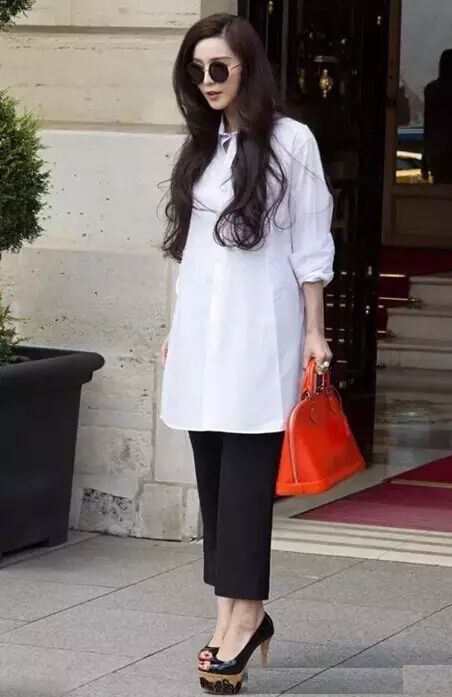 不过,裙子虽然美,但是出街也不能穿这么隆重啊~范爷的街拍中,还是有裤装的LOOK的,腿粗的妹纸可以学学范爷的裤子穿法哦~