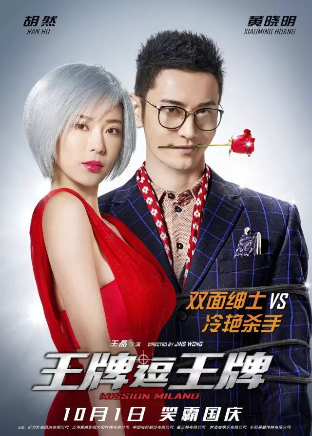 作为中国最受女性欢迎的一线小生,黄晓明用他帅气的外形和霸气外露的气质征服了N多粉丝,而他在以往作品中的撩妹手法,壁咚、胸咚……一应俱全,可说是撩妹界高手。而对于黄晓明的印象,多数人的第一反应必定是有颜、有钱的霸道总裁。但此次在《王牌逗王牌》里,黄晓明的形象有了非常大的突破,对此黄晓明笑说:“女孩子都爱霸道总裁。但这次我演的是一个戴着眼镜有点装斯文的呆萌总裁。”海报中面对身着红裙的冷艳杀手胡然,黄晓明只是含笑叼花,以一种内敛的魅力征服所有女性观众。
