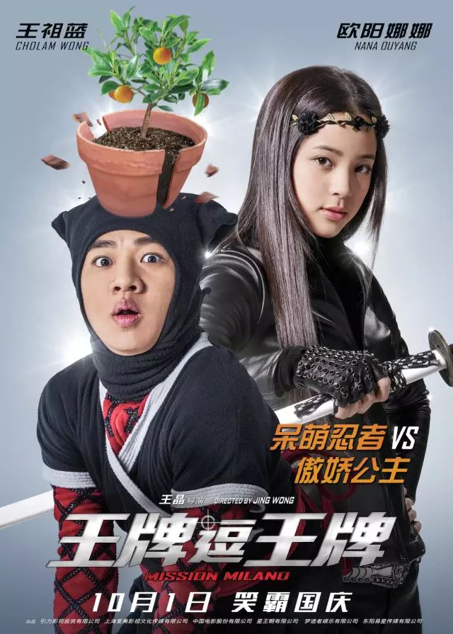 虽然戏里黄晓明才是欧阳娜娜的亲哥哥,不过与其从小青梅竹马的王祖蓝也对娜娜呵护备至。海报中,欧阳娜娜身穿黑色紧身皮衣,手拿短刀,一脸高傲的直视前方。身旁的王祖蓝却不幸被花盆砸中,呆萌的表情加上一身忍者装扮显得十分可爱。提到二人在片中的关系,欧阳娜娜说:“我在电影里是一个有点任性有点霸道的小公主形象,这个角色跟生活中的我不太一样。片子里我总是闯祸,祖蓝哥就负责帮我闯祸,而且永远打不还手骂不还口,把我宠的像小公主一样。