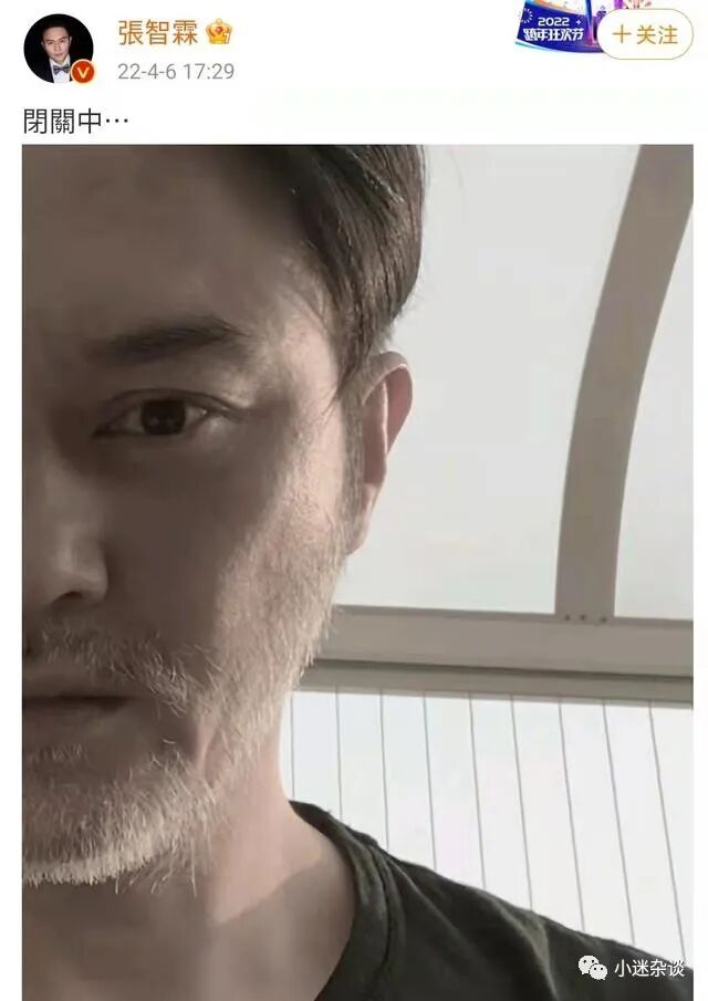 4月6日张智霖在社交平台上晒自己的白胡子,称“闭关中”。