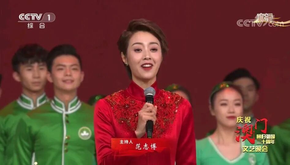 冬天,澳门温暖如春。19日晚,庆祝澳门回归祖国20周年文艺晚会《濠江情中国心》在澳门东亚运动会体育馆隆重举行。“我和我的祖国一刻也不能分离……”熟悉的旋律刚停,四位主持人,中央电视台主持人任鲁豫,中国国家话剧院演员范志博,澳门电视台主持人刘忠智,李若英,先后出现在舞台上。值得注意的是,这是女演员范志博第一次担任主持人,因为事先没有宣传,许多观众直到她出现在电视直播屏幕上才反应过来,这是意料之外的。