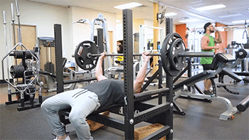 仰卧在平板凳上,双腿分开踩地,臀部、上,双手大概是肩宽的1.5倍握住杠放在胸上方,胸部肌肉发力向上推起杠铃至双臂伸直。