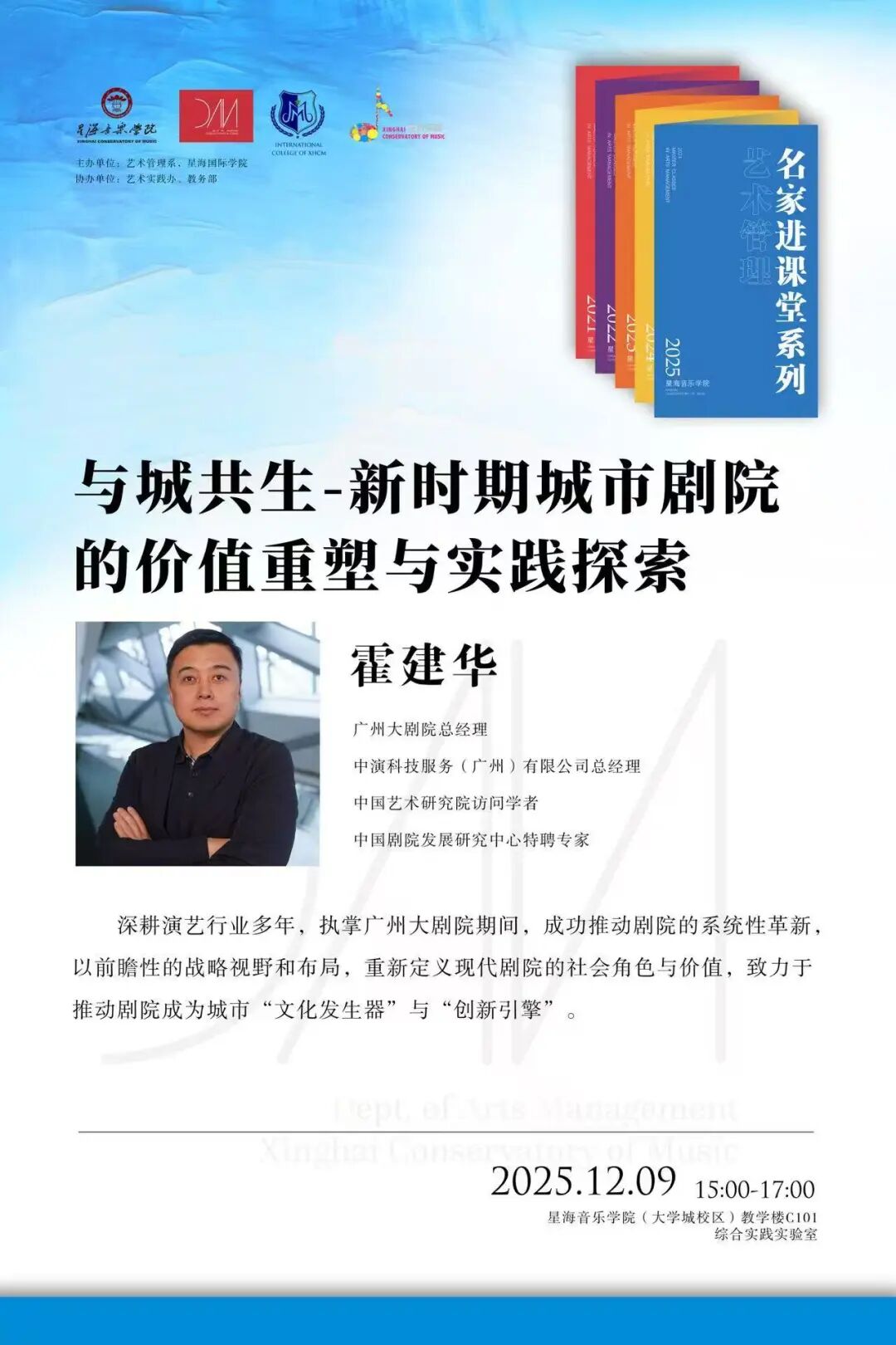 星海音乐学院艺术管理系“名家进课堂”系列讲座荣幸邀请到剧院运营与城市文化融合的引领者——广州大剧院、中演科技服务(广州)有限公司霍建华总经理莅临分享!