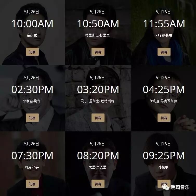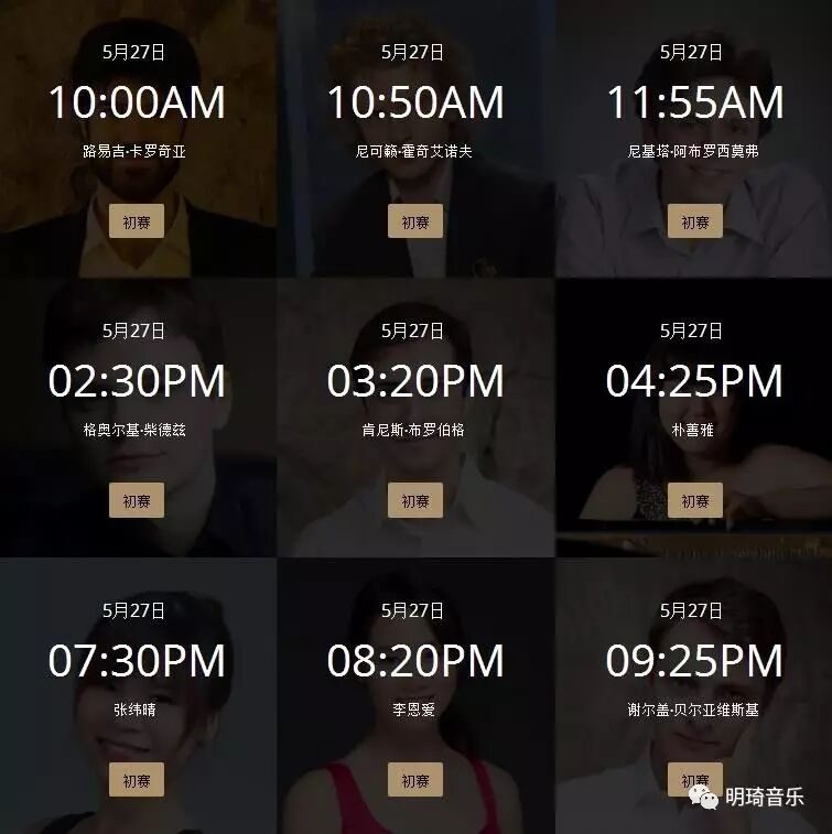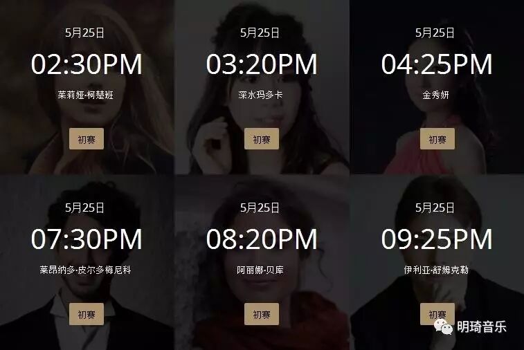 第十五届克莱本国际钢琴比赛比赛结果将分别于以下日期公布: