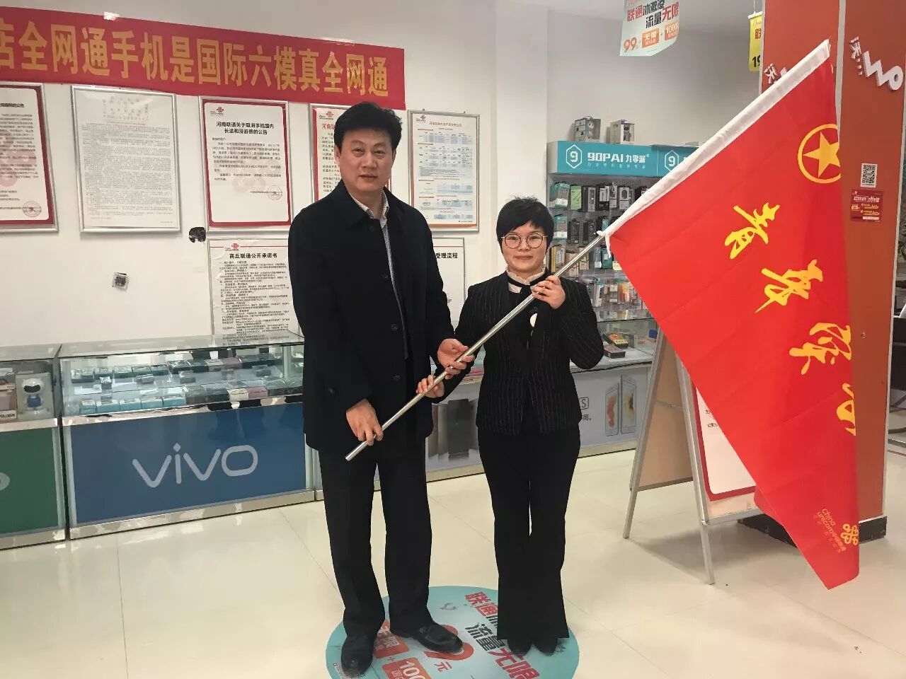 在坞墙镇营业部,高军同志与坞墙镇营业部主任朱媛媛及营业员亲切交谈,并现场了解划小经营、基层党员管理及员工生活情况,要求切实解决员工的实际问题。并为坞墙镇营业部授牌授旗“党员示范岗” “青年突击队”。