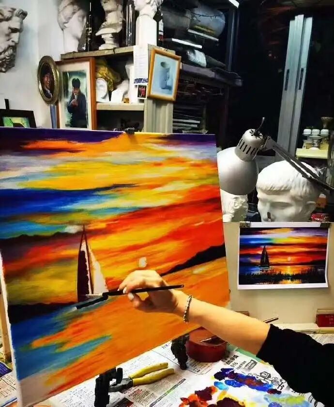 “我画画没有章法,拿起什么颜色就上,想到什么就涂上去。颜色不是装饰,是感觉的出口。就像有时候我觉得今天蓝色应该是安静,红色是压抑,橙色是希望。我不在乎画得像不像,我只在乎,我有没有把那个时候的自己放进去。”
