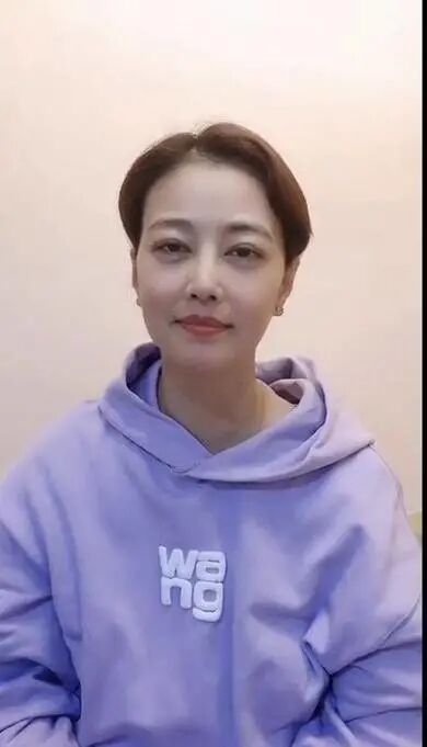 这样一件紫色卫衣的话给人一种非常宽松的感觉,能明显感觉得到现在年纪就是大了很多,因为黑眼圈就是特别的明显的那种,特别的显老气的呀。看样子还没是没有休息的非常的好啊。