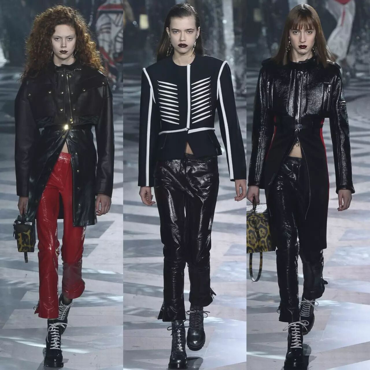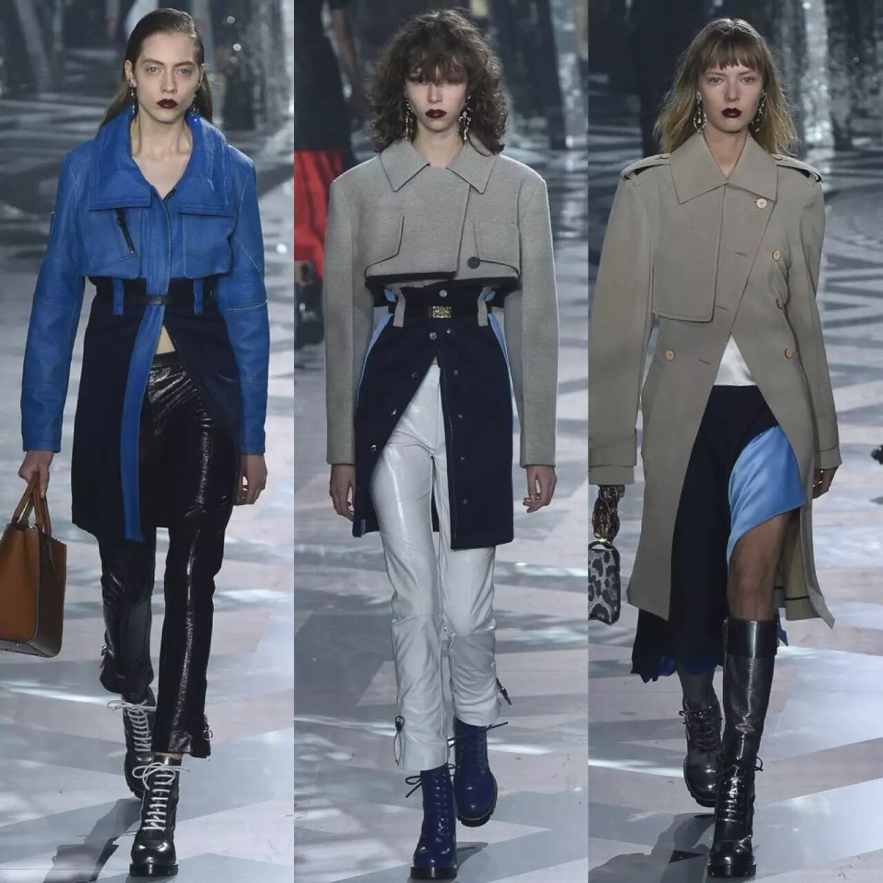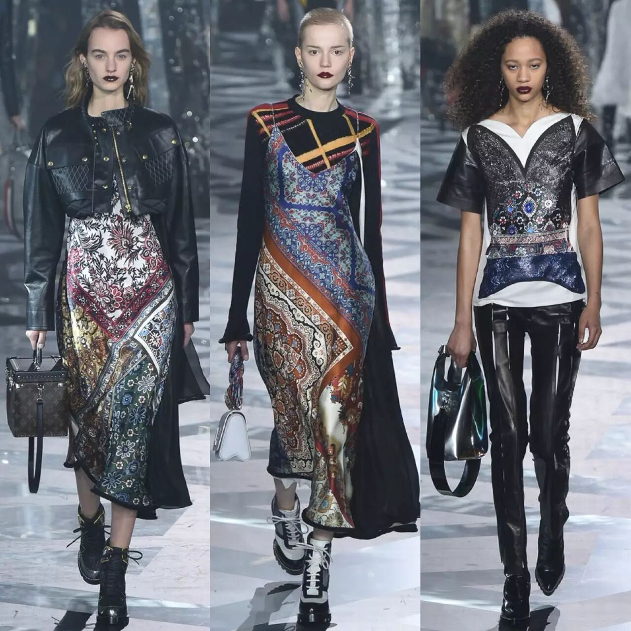 短款皮衣,马丁靴,皮裤,廓形的大衣外套,Louis Vuitton从来没放松过对酷型的把控,单品混搭的结合让柔情的硬朗无限拓展。
