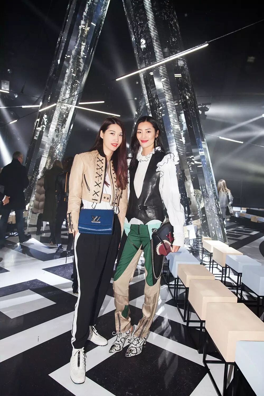 表姐、两姐又在秀场相遇啦,长腿姐们的合影就是可以美得这么任性,充满未来感的秀场背景也是大大加分!