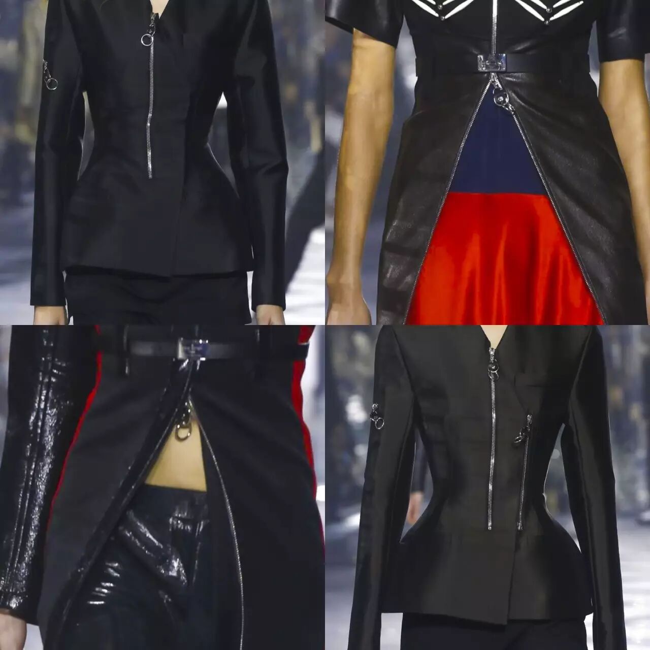 虽说保持自我很重要,但也不要忘了女性美。只是换了个方式,设计师巧妙的让拉链和腰带成为了凸显女性腰身的重要元素。毕竟“战场”上还是要有美人术的~