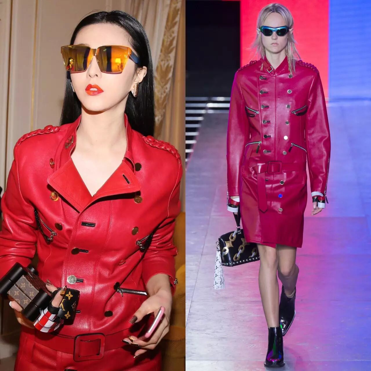 范爷身着路易·威登2016春夏系列惊艳亮相,红色皮衣绝对撑场面霸气十足。