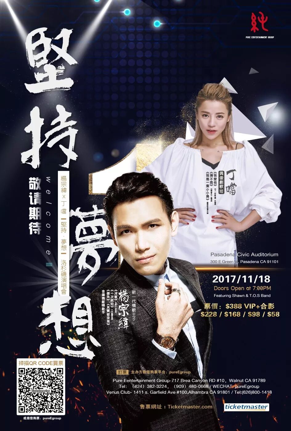 【坚持 • 梦想】洛杉矶演唱会11月18号开启,华语歌坛新一代歌神杨宗纬和情歌新天后丁当与你相约~