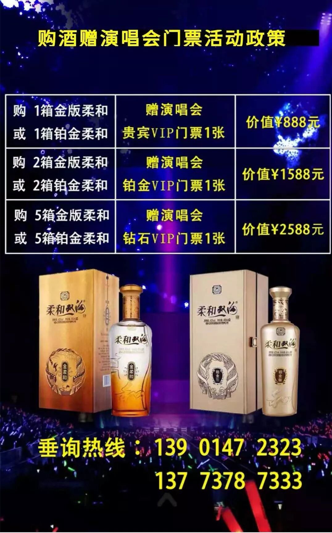 本次演唱会门票采取购酒免费赠票的方式。