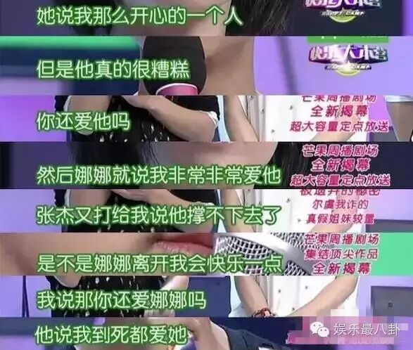 第7次到第8次的时候,两人当时还在闹分手的传闻,张杰来《快乐大本营》做辟谣。还公开在大本营上拿恋情开玩笑。