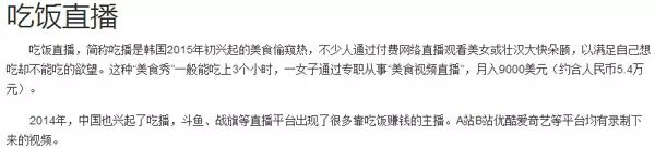 最早的“吃饭直播”,简称“吃播”,是从韩国流行起来。