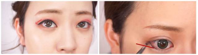 上眼线向下拉长,下眼线平行延伸