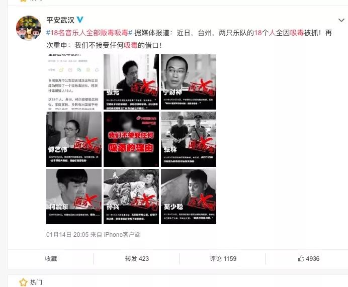 #18名音乐人全部贩毒吸毒#