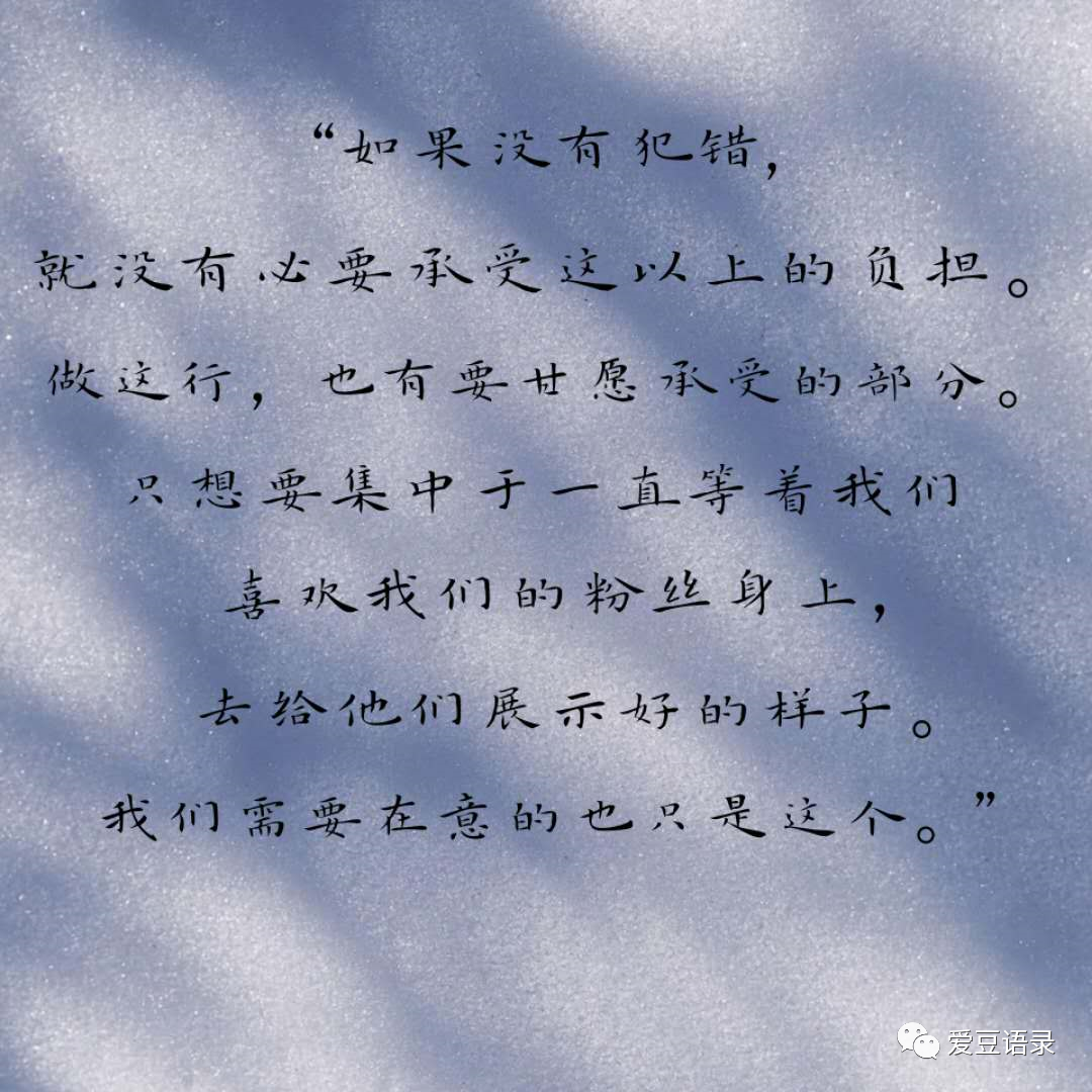 3、“如果没有犯错,就没有必要承受这以上的负担。做这行,也有要甘愿承受的部分。只想要集中于一直等着我们,喜欢我们的粉丝身上,去给他们展示好的样子。我们需要在意的也只是这个。”