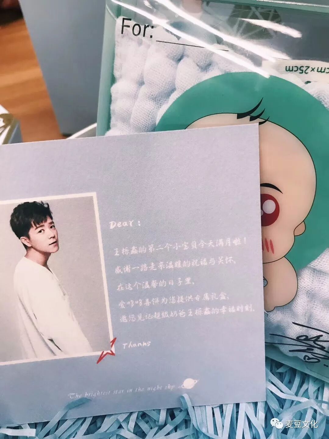 9月中旬,王栎鑫的儿子出生一个来月,麦豆文化携手天猫Tmall、爱哆哆喜饼、Dove多芬共同精心制作了一份爱心满月伴手礼盒,圈内好友纷纷好评。