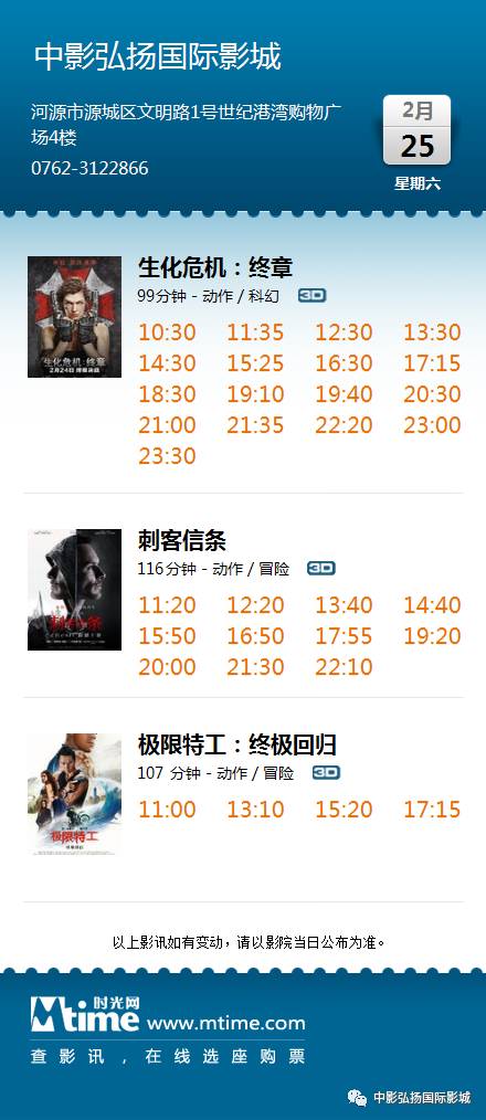 【影城地址】源城区文明路一号商汇大厦商汇购物中心4楼