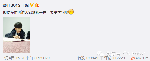 王源树立榜样与粉丝共勉 一TF一 内地男星 2016-03-05 13:43:31 95 创作不易,用心坚持,欢迎请BaGua喝几杯爱心咖啡!打赏并支持本文 打赏并删除本文 在忙也要爱学习 创作不易,用心坚持,欢迎请BaGua喝几杯爱心咖啡!打赏并支持本文 打赏并删除本文 感谢您的支持鼓励,我会继续努力的!文章地址:用户邮箱:打赏金额:USDT 请输入数字点击”去打赏“,即可进行打赏支持本文章哦 王源 About the Author 一TF一 功能介绍:欢迎关注一TF一微信号,每日推送TFBOYS的独家新闻噢 Related Posts 王源结束录制杭州飞北京 2018-03-06 19:25:50 王源巴黎各种合照来袭~ 2018-03-05 18:37:15 王俊凯泰国广告拍摄 2018-01-17 20:37:15 TFBOYS小黑屋来咯~ 2018-01-16 21:36:49 王源结束王牌录制回北京~ 2018-01-12 15:58:38 发表评论