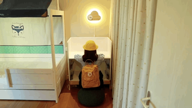 这个床头柜也能成长,婴儿时期它可以承担专门的换尿布台的功能,儿童时期他又能变成小书桌,而且还可以随着孩子的身高调节高度。平时孩子不用它的时候,它就是一个默默奉献的储物柜,可以收纳很多常用的轻便的衣物。(具体操作快戳视频吧~)