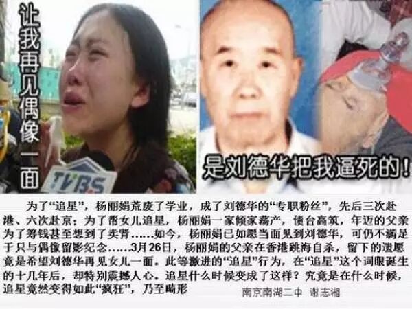 杨丽娟的父亲竟然因为刘德华没有安排女儿单独的与他见面的时间,因此跳海自杀,还留下了一封遗书大骂刘德华...