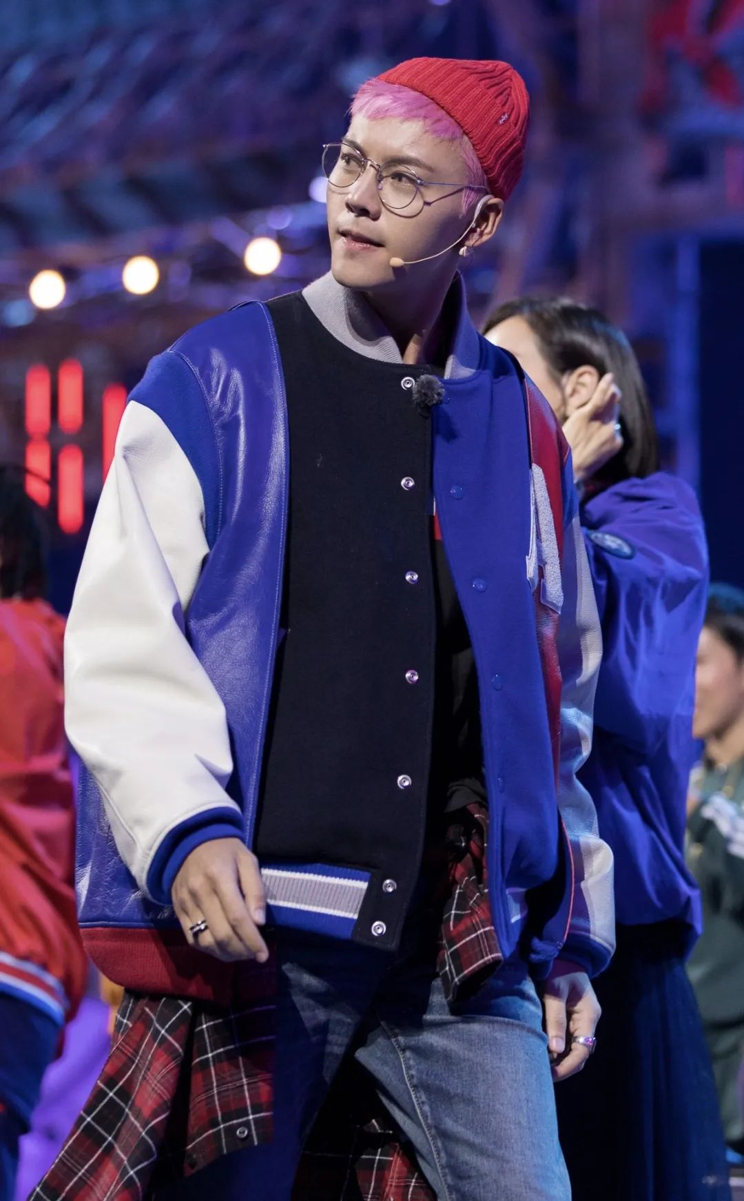陈伟霆还搭配了西瓜红的针织毛线帽,搭配复古风的银色圆框眼镜,潮味十足。陈伟霆这颜值真是360度无死角呀,这么二次元的发色也能轻松驾驭。陈伟霆的服装造型也很个性,超酷十足。