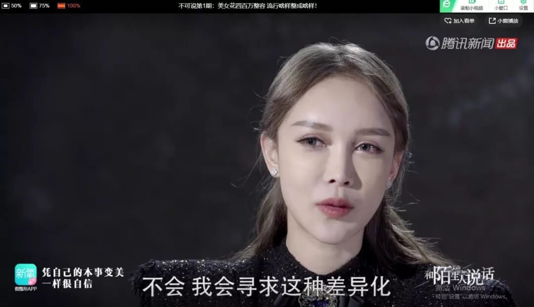 另一句是:即使专业的人看我已经很美了,不需要整了,但我能看到我自己的缺陷。