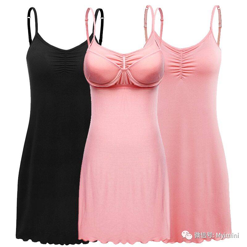 代尔带胸垫吊带睡裙女,夏简约打底bra连衣裙,免穿文胸睡衣内衬裙。