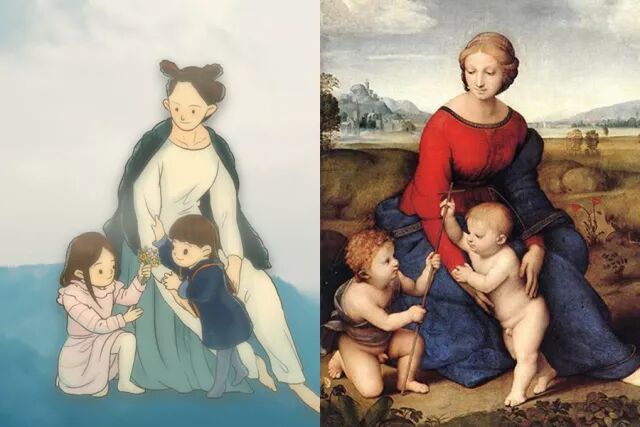 当然动画中也隐藏了很多彩蛋,需要大家用心才能发现。举个例子,在小泡芙那一期中,大家共赏美景的空镜动画不仅仅是剧情的延伸,还是向经典致敬——世界名画用萌萌宅的方式再现。