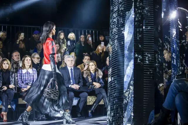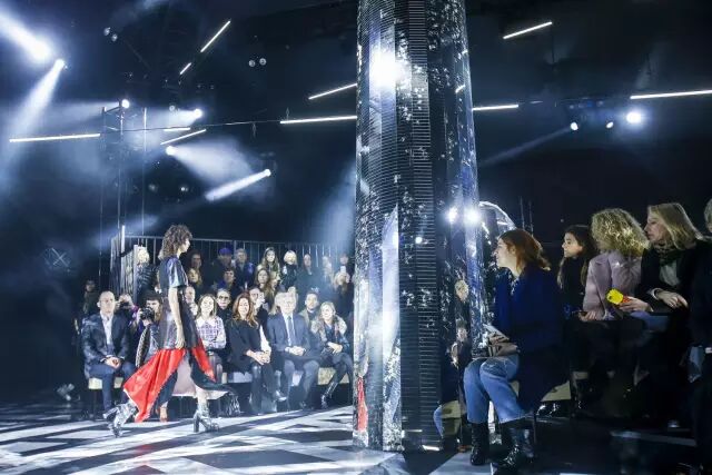 200000块半破碎的镜子拼凑构成整个秀场的柱子外观,