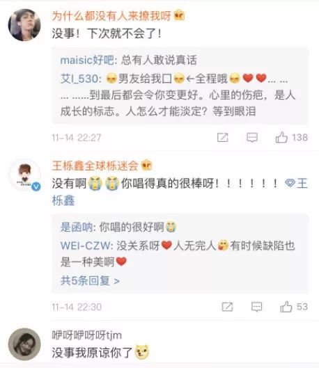 其实每个人都有失误的时候,下回keep住好状态就好啦!不过,栎鑫主动发文认错唱砸了,好真诚。网友们看到微博后也纷纷留言安慰说:“没事!下次就不会了!”“没有啊,你唱得真的很棒呀!”“出张新专辑就原谅你。”
