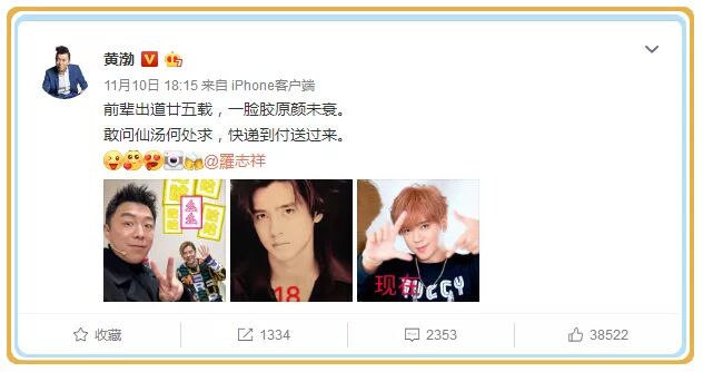 黄渤晒罗志祥18岁旧照,还配上了一首诗,诗意满满醋味,太皮了