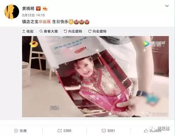 黄晓明配的那张图,是去年两人参加的综艺《中餐厅》的视频截图,当时,黄晓明把赵薇的经典剧照拿出来,说是中餐厅的镇店之宝,却被赵薇嫌弃,说要扔到海里去。现在,他特意把这段视频截图发出来,再次用“镇店之宝”来称呼赵薇,足以证明对方在自己心目中的地位。如此走心的配图,难怪网友在下边齐刷刷的一致刷好评,粉丝高呼“一同祝她生日快乐吧,咱们的镇店之宝”。