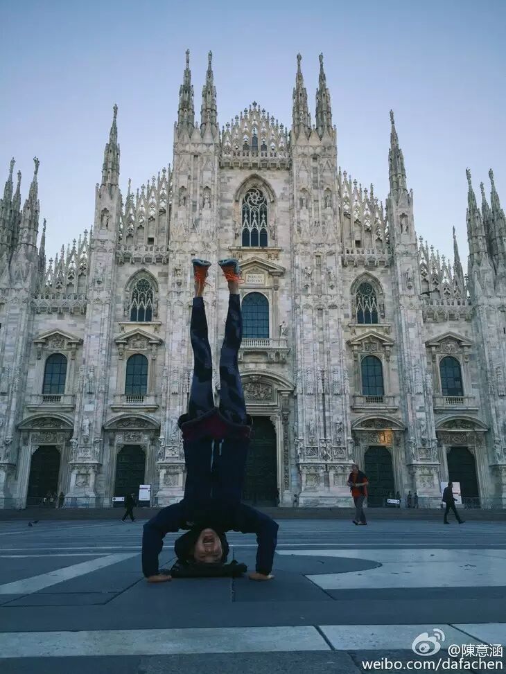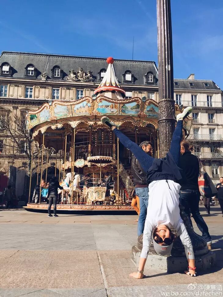 而且她超级爱倒立,她把自己在威尼斯、巴黎等等旅行中倒立的照片,都Po在了社交网络,真心很可爱。