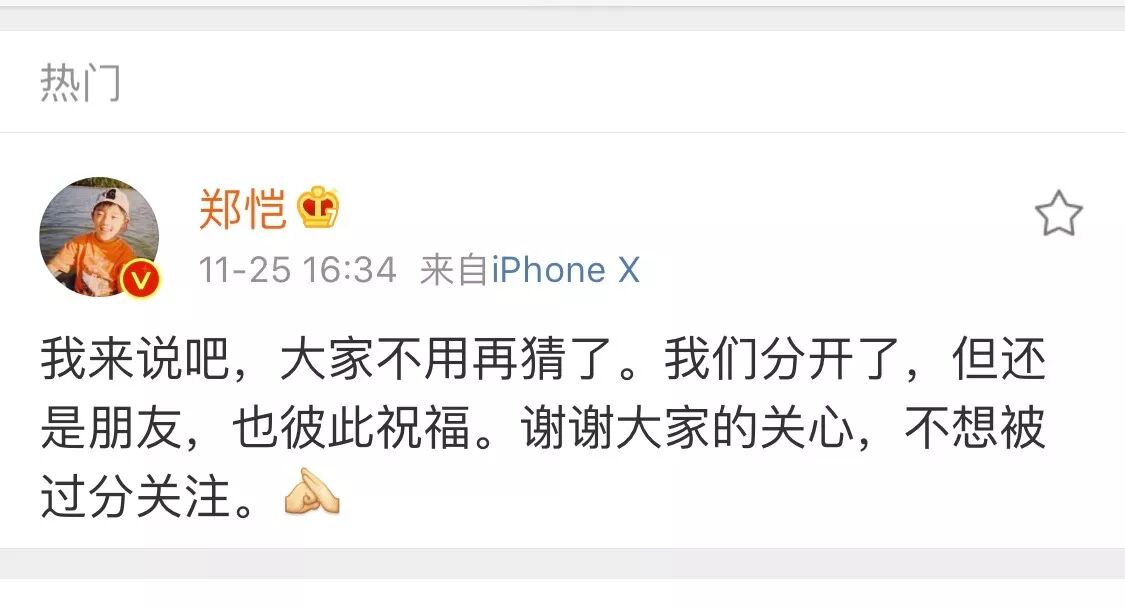 老鬼,郑恺微博承认分手了,为什么现在才公开分手,难道又是炒作?