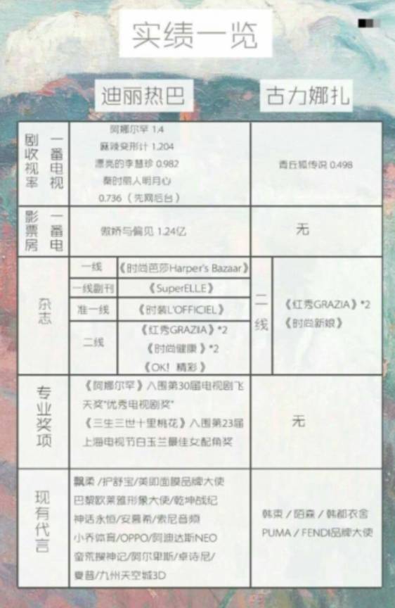 古力娜扎和迪丽热巴两家粉丝撕起来了,做实绩表来拼人气