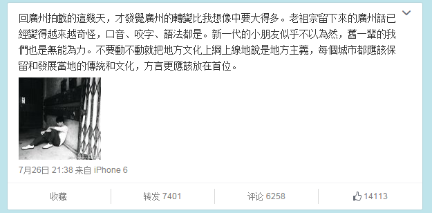 他一直觉得要是自己唱得不好就是给广州人丢脸。