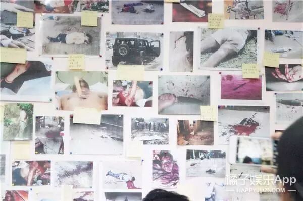 走进另一间办公室内,发现了一面照片墙,上面贴满了各种血腥的犯罪现场。