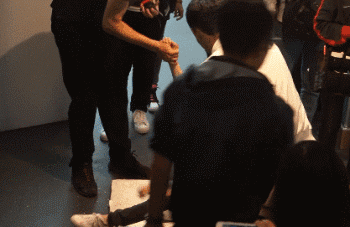 而这段话,在拍摄现场就被印证了,被工作人员拉起来的子文向凯凯比了个赞,表示刚才演的很好。完全没有提自己被摔疼了这件事~
