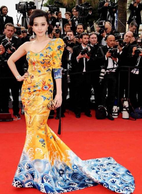 2010年戛纳电影节,身着明黄色龙袍出场开始成为话题女王,随后2011年的仙鹤装、2012年瓷娃娃装,乃至去年戛纳电影节的花仙子造型,都是话题爆款。