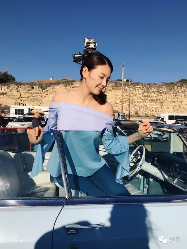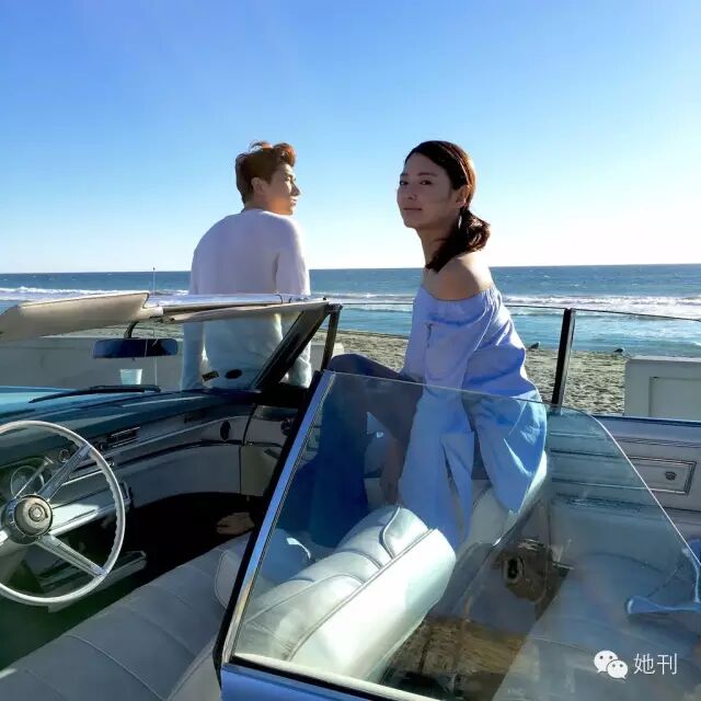 而当她换下红毯礼服,穿上一字肩,海天美景下的张雨绮,又给人一种如沐春风般的闲适感。