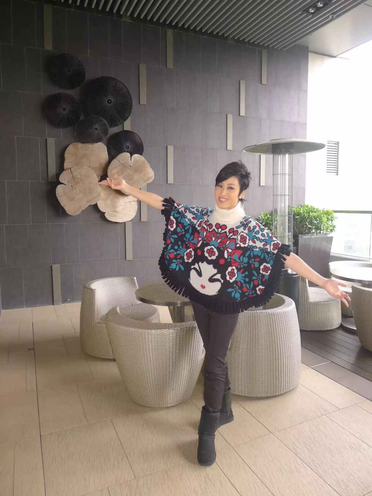 陈法蓉穿上VIVIENNE TAM OPERA GIRL 毛织系列 - 羊毛缕空上衣及毛织斗篷宣传慧妍雅集禁毒教育计划。