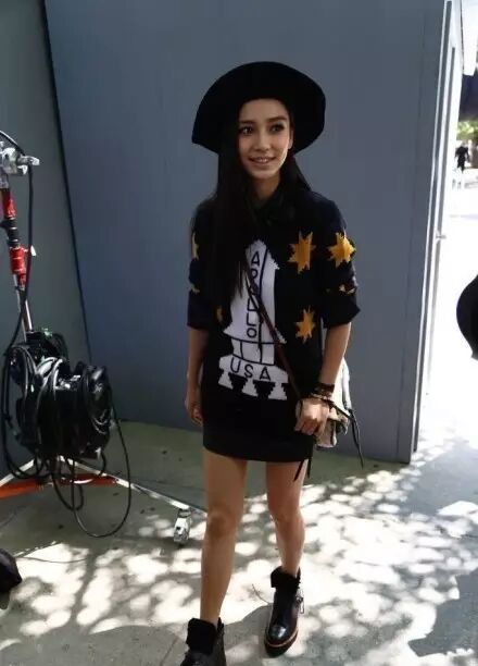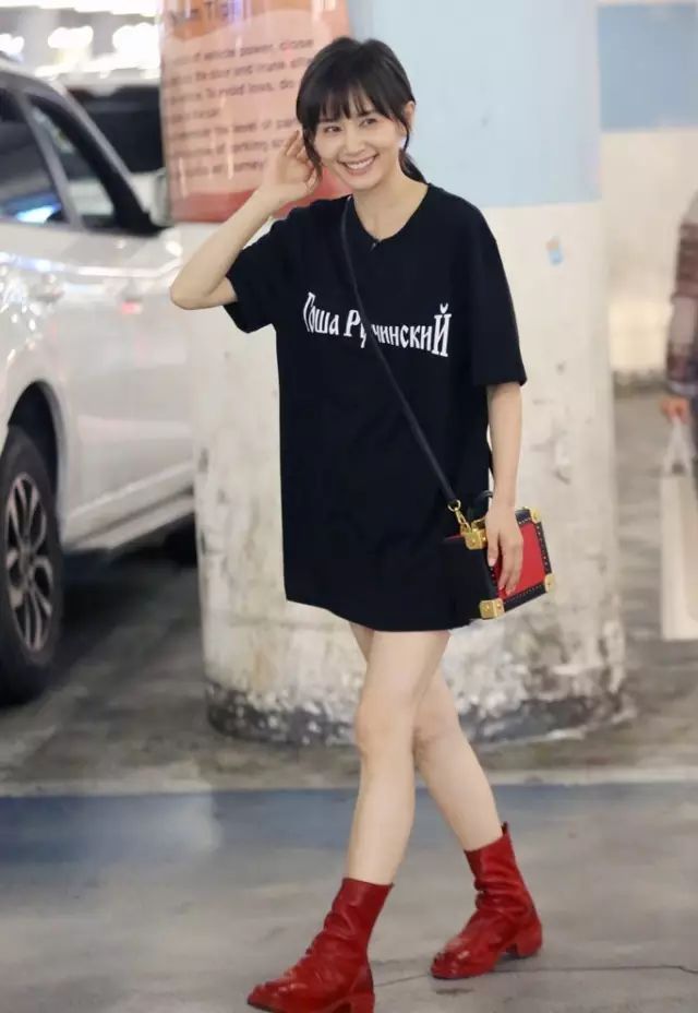 靴子上脚加上本来就甜美的笑容更是美上加美